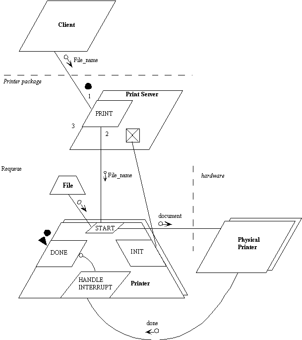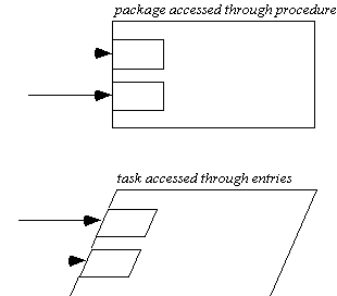 Throughout his work there is an emphasis on mechanical or electrical analogs for computer programs. He differentiates the black boxes into the Ada language constructs of tasks and packages: