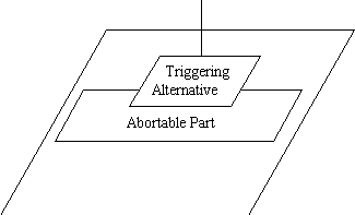 Essentially, the trapezoid-shaped box signifies that mutual exclusion
