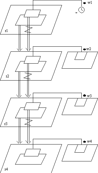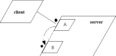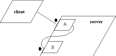 In the above diagram, nested boxes are used to show the alternate selections possible by the server task in response to requests from clients.